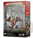 He has crafted more daemon engines than even he can recall, and was responsible for bringing the great Forge Anathema to the Bullfather’s worship. He ought to have been consumed by the stone-flesh curse long ago, but sheer will and arcane secrets have delayed this doom. He now seeks nothing less than to follow his master into godhood. Atop the bronze-bodied Taurus Ghorrakos, he wields the flames of ruin without fear, all while subjecting foes to a portion of his own dreadful curse.