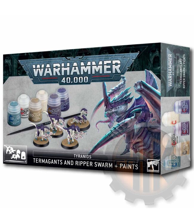 Termagants are scuttling predators that attack in huge swarms, spitting living ammunition from their symbiotic weapons. Ripper Swarms squirm alongside them as living carpets of teeth and flesh, devouring whatever they come across.