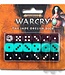 – 6x turquoise six-sided, round-edged dice that measure 16mm along each edge, with black markings and a Jade Obelisk icon on the 6 face