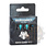 This is a set of 16 six-sided dice with squared edges for use in games of Warhammer 40,000, themed around the Raven Guard. They are cast in pearlised black acrylic plastic with pale blue ink markings, and measure 16mm along each edge. The 1-5 facings are traditionally pipped, and each '6' face is decorated with a raven skull icon.